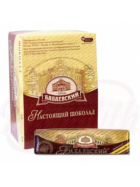 Összetevők: csokoládé 79%, cukorral sűrített tej 8,5% zsírtartalmú, gyümölcspép 2,5% (alma), szirup, morzsolt mogyoró1,3%, konyak, kakaóvaj, alkohol, étkezési sav: citromsav, természetazonos aroma. Származási hely: Oroszország.